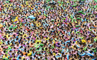 The temperature was more than 100 F as locals and tourists took to the Daying County Saltwater swimming pools in China's Sichuan province.